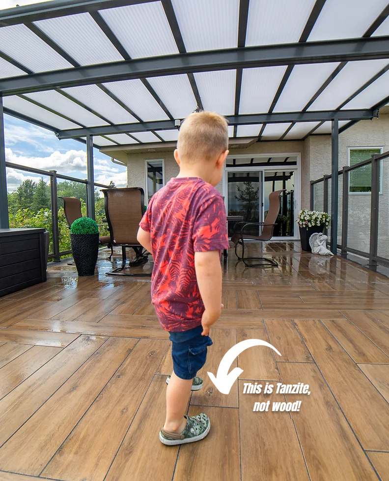 Tanzite STONEDECK doesn’t scratch, stain, or fade like wood!